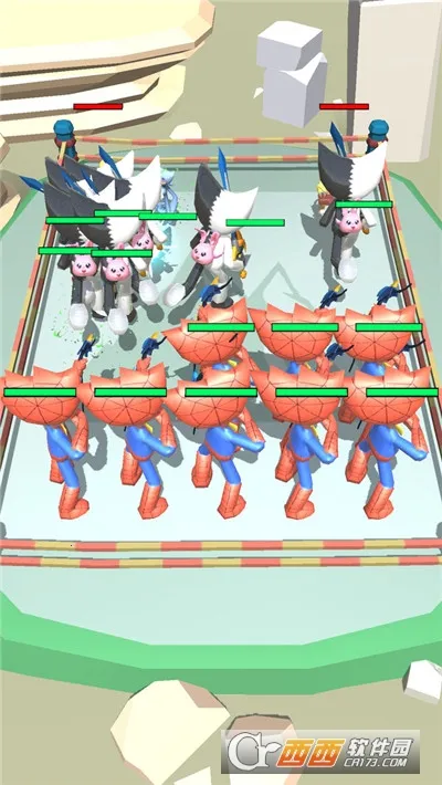 <2>**玩法元素多样**:融合多种闯关元素,以合成对战为主题,在准备阶段合成蓝色怪兽提升战斗力与敌人战斗,过程充满策略性。