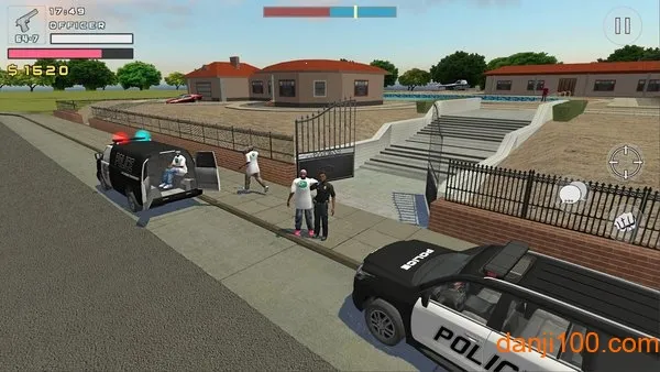 3、多元玩法体验:有驾驶警车追捕罪犯、参与武器战斗、完成各类任务等多种玩法,如车祸救援、人质解救等。