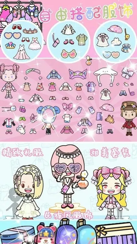 2、装扮自由:提供丰富的服装及配饰,可自由搭配出不同风格,无论是可爱萝莉风还是时尚校园情侣风都能实现。