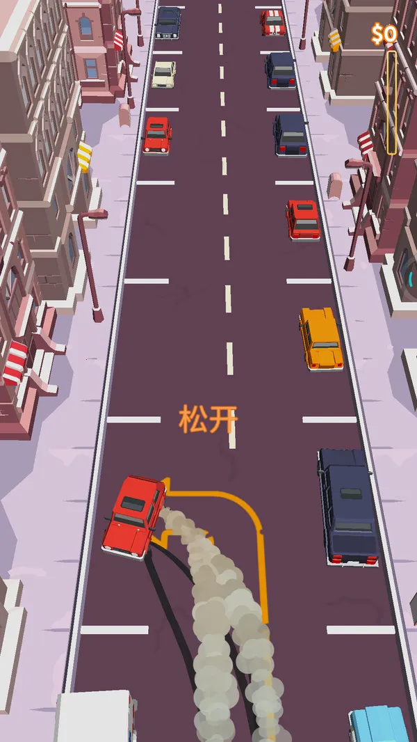 在操作方面,采用简单的摇杆操作,易于上手。核心玩法类似点击反应类游戏,车辆前进时观察空位,在恰当位置按住屏幕使车辆漂移入库,松手时机是关键,把握好能双倍加分,达到分数要求即可闯关。