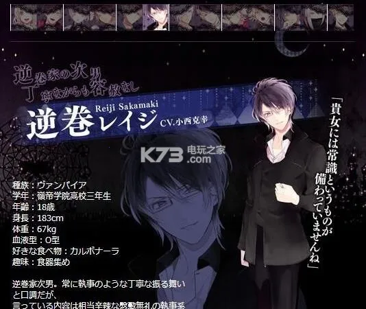 游戏剧情围绕女主角小森唯展开,她因父亲转职转学并寄住在逆卷家,结识了六个性格各异的吸血鬼兄弟。玩家扮演小森唯,通过与男主们对话互动增加亲密度,解锁专属剧情和回忆。剧情丰富,充满奇幻浪漫元素,每个角色都有独特故事线。