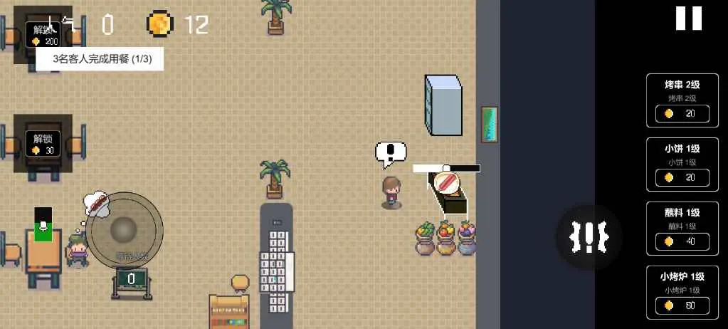 2、游戏 深度还原淄博特色烧烤文化,独特像素风格营造热闹环境,玩家沉浸其中,体验经营乐趣与挑战。