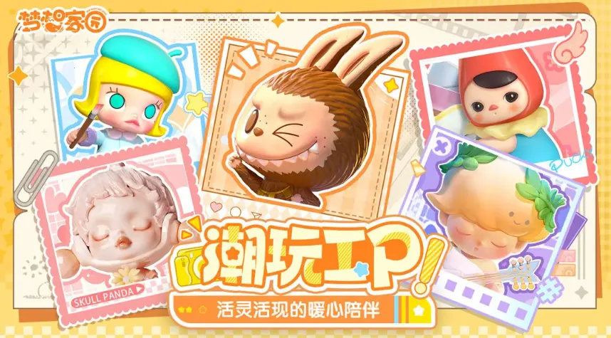 2、角色与场景出色:融入泡泡玛特独家潮玩IP,有众多人气角色,如MOLLY、LABUBU等。还有精致3D画风和各种主题飞岛,提供丰富探索体验,每个飞岛都有独特魅力。