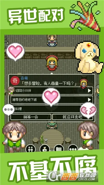 《勇者27岁单身(勇者脱单游戏)》是一款模拟经营角色扮演手游,采用复古像素画风,结合精彩冒险玩法与精心制作的背景音乐,带来身临其境的体验。