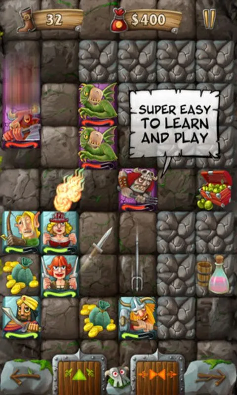 游戏模式简单易上手,有13个英雄,每个有6个等级,还有19种独特敌人,具备故事模式和生存模式。战斗以排阵型全队走格子前进的形式展开,玩家用金币招募不同职业人物,最多招募6人,需根据关卡地形和敌人属性配置队伍。游戏初始提供战士、弓箭手、盗贼三个职业,每闯过一关增加一名新职业。有时打倒敌人会掉落升级机会,走到特定格子的职业可免费升级。虽花钱处多,但关卡金钱掉落也多,还能反复刷关,基本不愁钱。此外,游戏修复了部分小错误,提升了整体稳定性。