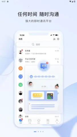 1、沟通便捷:集团内部沟通极为方便,能联系到任何一个人,还有不同的项目群组,客户也可快速联系员工,方便反馈问题并得到解决。