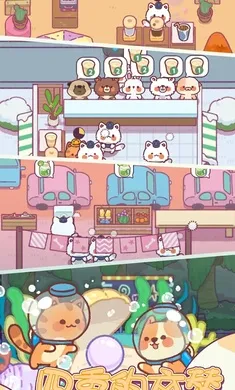2、丰富猫咪厨师:玩家能与一群各具特色的猫咪厨师合作,每只猫咪都有独特烹饪技巧和菜谱,合理分配任务可挖掘其潜力,制作出多样美味料理。