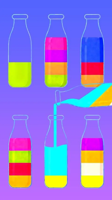 1、玩法丰富多样:液体分布随机刷新,杯子数量随关卡深入递增,且颜色区分明确,每次挑战都有新体验,能激发玩家思维与动作能力,还可自由选择排序方法推进关卡。