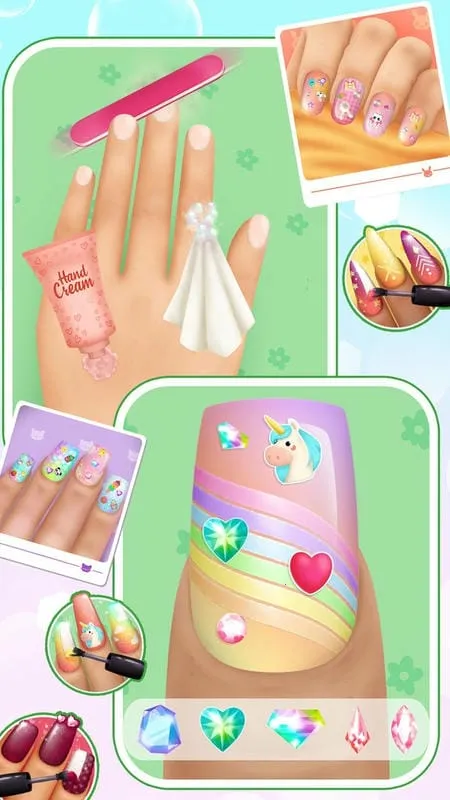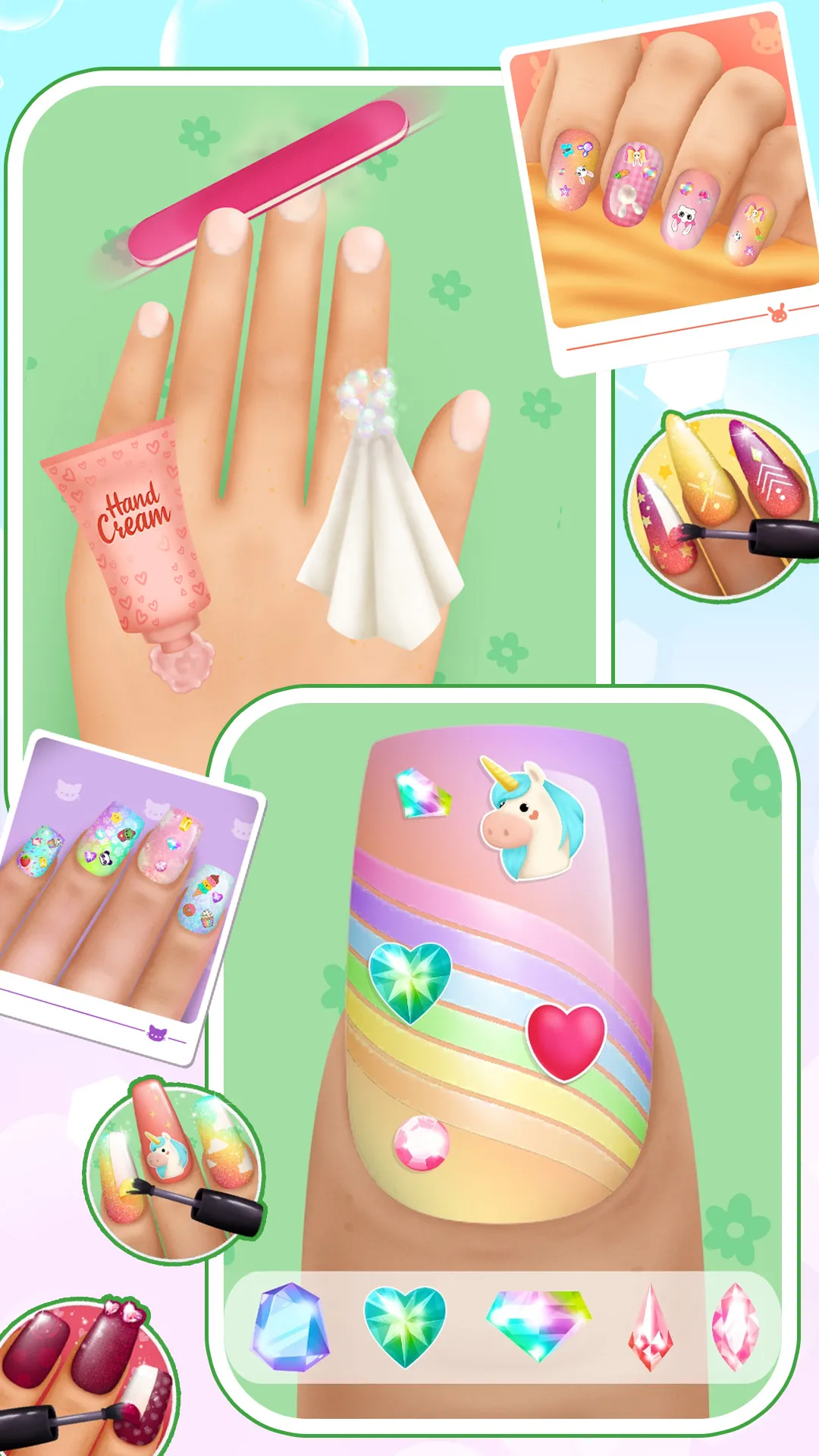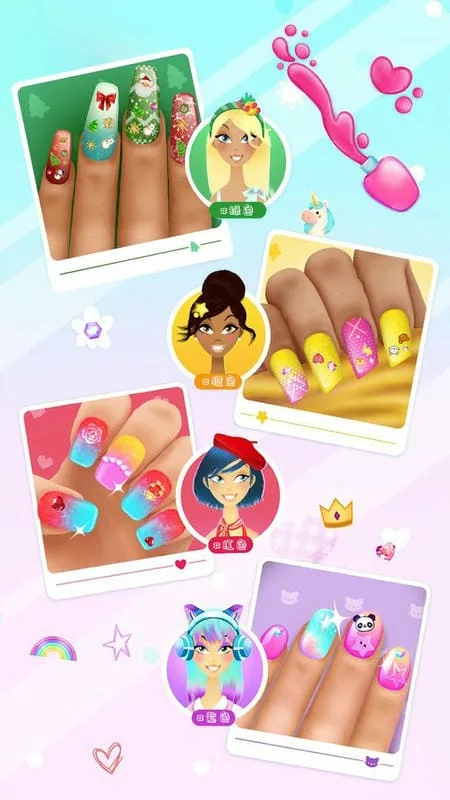 4、趣味玩法体验:玩家可以帮助创造美丽美甲图案、用彩色贴纸装饰美甲、收集漂亮配饰做独一无二的美甲,还能不断尝试不同玩法,沉浸其中享受精彩欢乐的游戏体验。