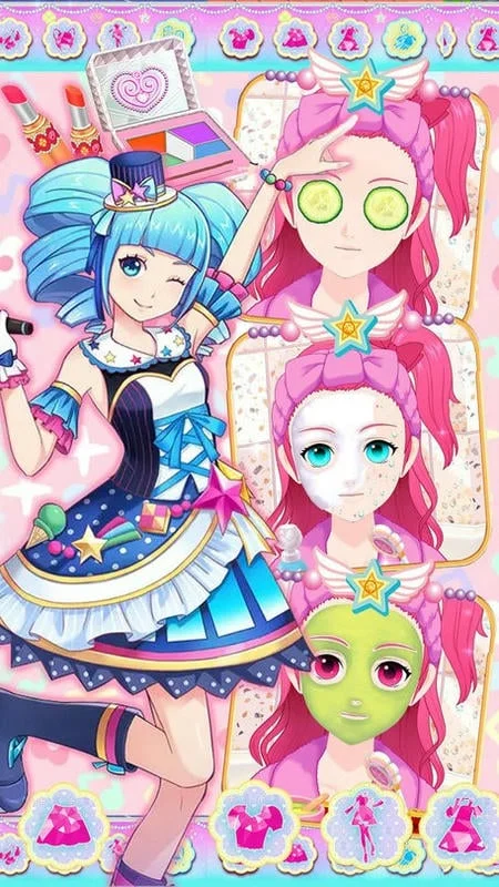 此外,玩家装扮满意后可拍照纪念,制作头像和壁纸,还能分享给朋友。而且,游戏会不定时更新更多心动服饰套装与彩妆产品,让玩家持续搭配出梦幻又可爱的二次元动漫少女,值得一玩。