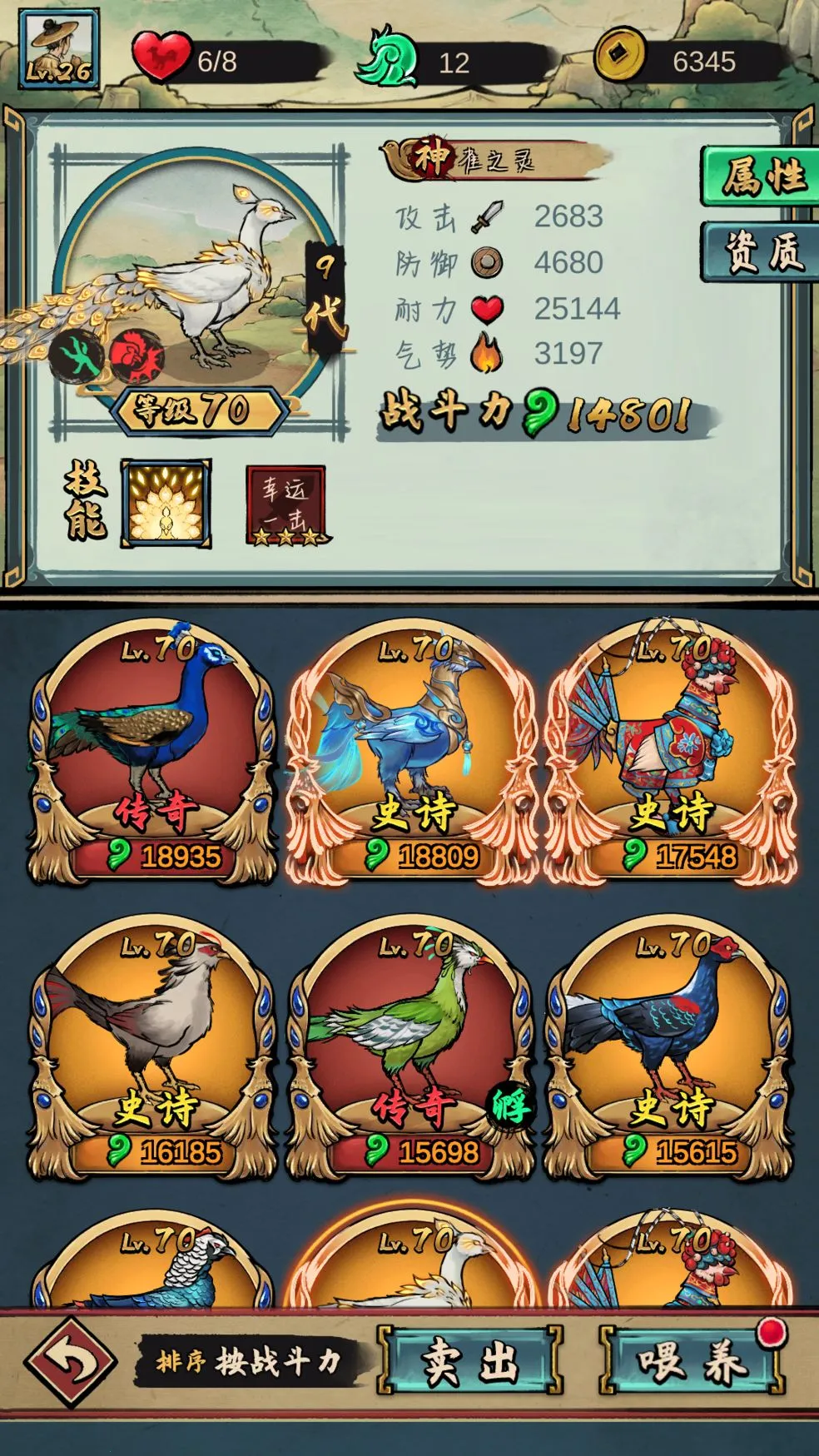 1、丰富多样的斗鸡品种:游戏中包含各种不同品种的斗鸡,每一种都有独特的属性和技能,玩家还能通过繁育制度,将不同品质的斗鸡进行组合,孵化出更高品质的斗鸡,甚至有机会让斗鸡进化获得变异的灵鸟。