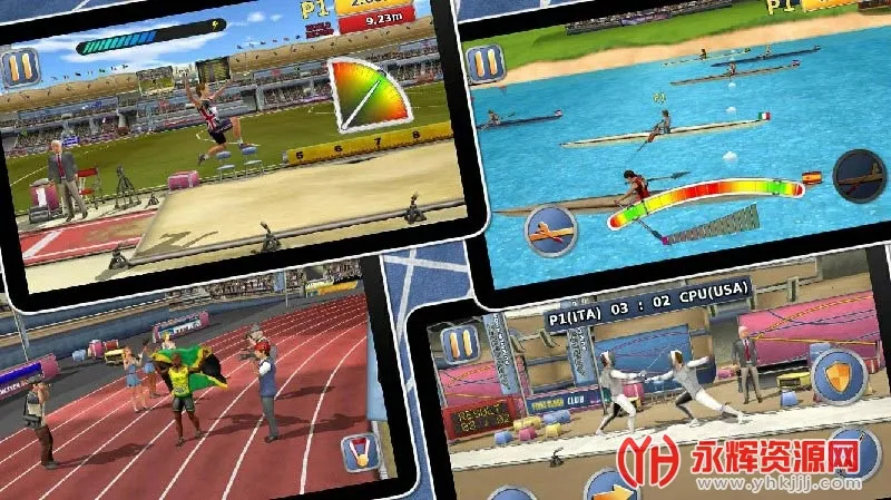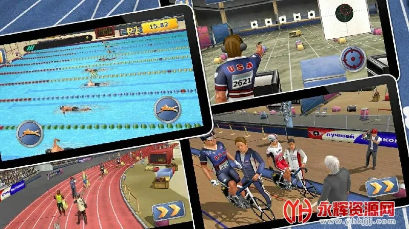 玩法上,操作简单,通过触屏和遥感即可掌握,且每次玩前有教程。比如铁人三项,100米冲刺不能抢跑,开始后疯狂点击冲刺;射箭依靠遥感,以重心为目标;跳远要注意助跑速度和跨越幅度。