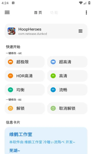 在功能更新方面,新增双开修改原神双开资源流转等内容,修复了和平精英等游戏的一些修改错误。支持众多游戏,如和平精英、原神等。使用时,下载安装后点击页面上方下载按键,打开软件点击需升级画质的游戏,进入软件选择想要的画质等级即可。