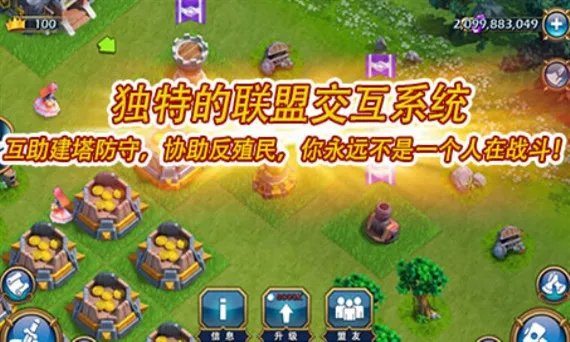 2、玩法新颖多样:有独创的殖民掠夺领地对抗玩法,支持跨服战、军团战、防御战等,还融入盟友互赠钻石、互建炮塔互助反击等友好设定,带来颠覆传统的战略塔防模拟经营体验。此外,还有培养士兵、抢夺领地等玩法。