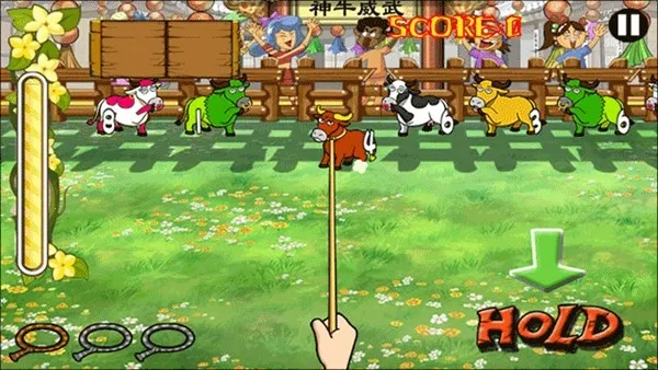 游戏特色鲜明,野外有大量奔跑的牛,需快速用绳子抓回,抓回的牛要拴在规定区域吃草。套牛有难度,牛在奔跑,玩家要比牛速度快并想出办法套住它。