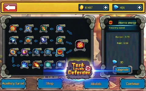 玩法上,按住坦克不放,上下滑动屏幕射击,点击右下角快捷键可选择不同弹道攻击敌人。消灭指定数量敌人就能前往下一关卡。获取的金钱可用于强化坦克作战能力。无论是安卓版、PC 版还是 IOS 版,玩家都能体验到这款游戏带来的策略塔防与射击的乐趣,为了家园和平而战。