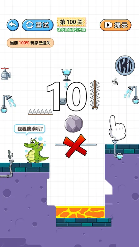 3、体验治愈且新鲜:当水流成功注满浴缸,小鳄鱼欢快拍水的庆祝动画与温馨音效,格外治愈;每解锁新场景,会呈现风格迥异的浴室主题与环境细节,带来持续的视觉新鲜感。