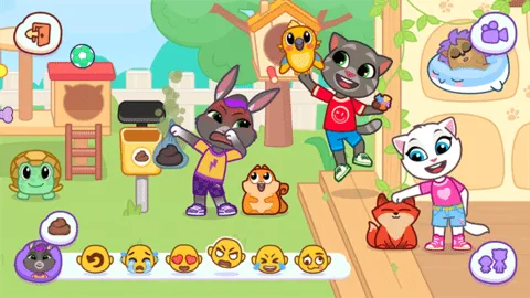 2、玩法丰富多样:类似于米加小镇,内置很多房屋,有带角色听课、带娃等玩法,还能自由设计角色、编写专属故事、装扮萌趣小屋、与会说话的汤姆猫家族互动等。