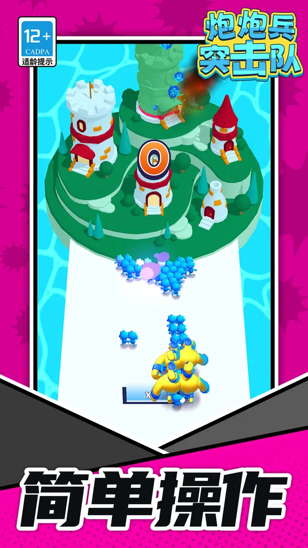 炮炮兵突击队是一款动作闯关游戏,以兵力扩充为核心玩法。玩家可攻占塔楼掠夺人口、选路线闯关,策略抉择影响战局。精美画质搭配爽快节奏,战斗与策略兼顾,上手易,快来体验兵力壮大的闯关乐趣!