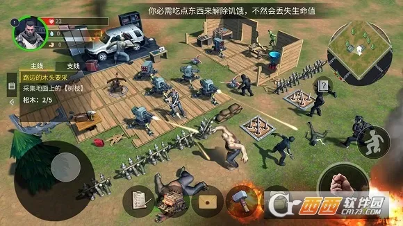 攻略上,开局清理基地周围怪物和资源,铺设地基,前期不建议造墙;新手在家附近森林和采石场收集物资,注意控制负重,优先收集木材和石料;初期无需急着制作工具,沿途收集资源,清剿丧尸后再集中开采。