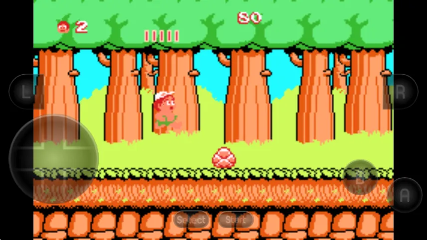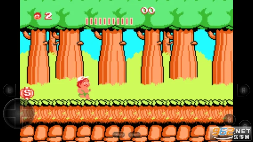 玩法上,启动游戏选start,点界面右下方横条按钮开始。用左侧按键控制移动,A键跳跃,B键攻击。冒险中要躲敌人、避陷阱,多搜集果实回血。