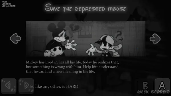 嘿,如果你在找那种独特又带感的音乐游戏体验,周三不忠夜重制版绝对值得一试!它有着复古黑白画风,能带你进入神秘城堡开启音乐冒险。在游戏里,你要根据音乐节奏精准点击滑动屏幕,像个音乐冒险者一样挑战高分和连击纪录。这里有各种风格的音乐曲目,不管你喜欢哪种类型,都能找到喜欢的歌来消磨时间。而且它还有全新的恶搞米老鼠模组,从正常形态到各种诡异变身,每个阶段都有不同挑战,关卡超多,对应的音乐和节奏各不相同。你还能解锁更多模式玩法,难度提升但乐趣满满。通过不断挑战获得高分,就能解锁更多音乐和模块,增加游戏多样性。要是你想体验与众不同的音乐节奏游戏,周三不忠夜重制版能满足你,快来试试吧!