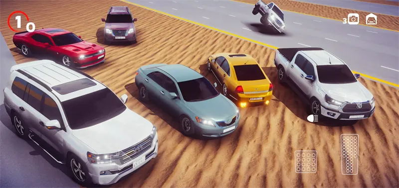 2、玩法丰富:玩家可操控各类车辆在多种赛道场景,如城市街道、山地公路等驰骋,通过控制油门刹车实现弯道漂移等特技,畅享竞速盛宴。