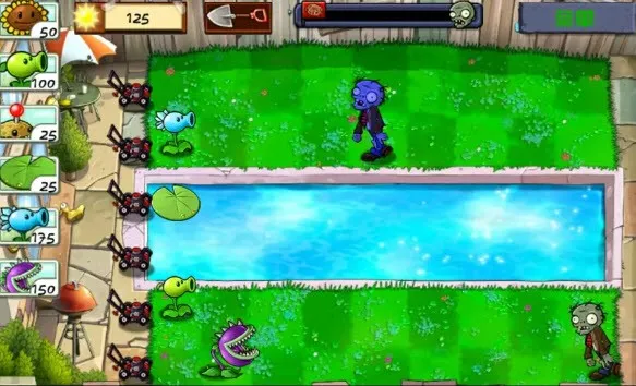 新手攻略方面,开局先种两排向日葵拉满阳光产量,阳光够200再补豌豆射手。不同僵尸应对方法不同,普通僵尸用豌豆射手,铁桶僵尸可用樱桃炸弹或磁力菇,矿工僵尸用分裂豌豆射手或忧郁菇,气球僵尸用仙人掌或三叶草。泳池和屋顶关卡也有各自的植物搭配策略。