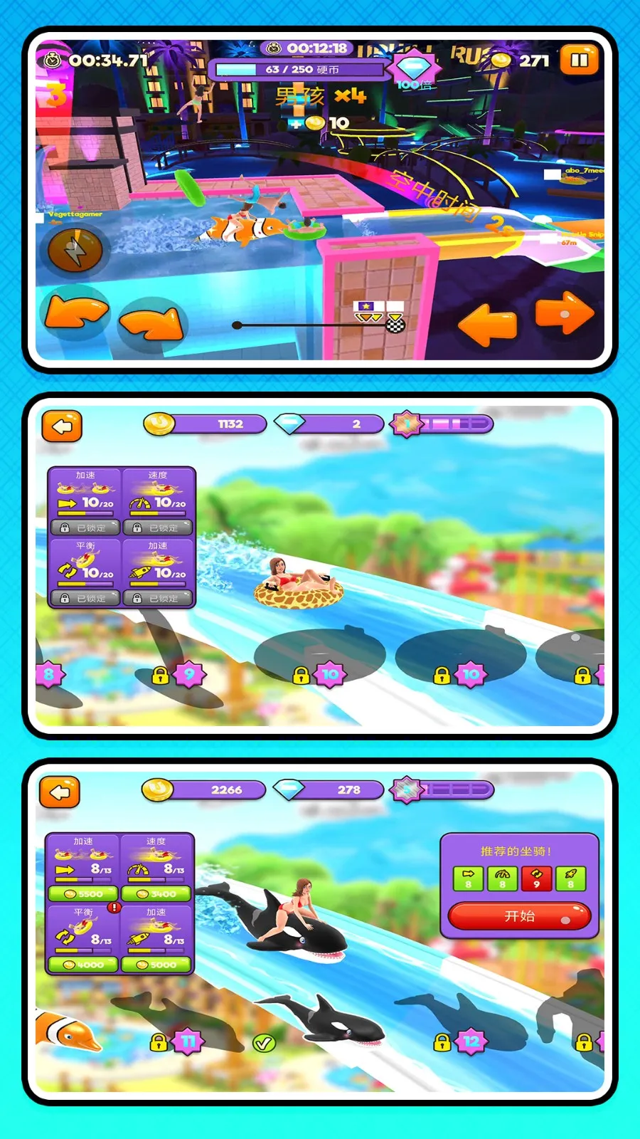 这款游戏特色鲜明。它围绕滑梯极速狂飙,将角色操控与多变赛道融合,带来纯粹竞速快感。波浪形赛道结合动态地形机制,让滑行充满新鲜感与挑战。基于真实物理引擎,操作反馈流畅真实。而且有丰富的角色外观自定义选项。