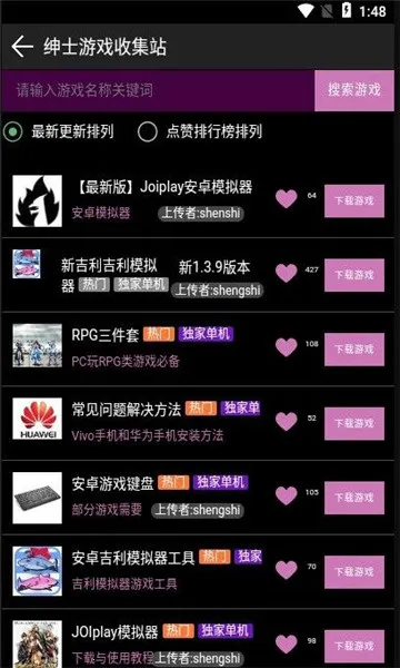 4、操作便捷:采用简单易用的界面设计,优化搜索功能和详细分类,玩家能轻松浏览和搜索到自己想要的游戏,输入游戏名称即可快速找到,还提供快速的游戏安装和更新功能。