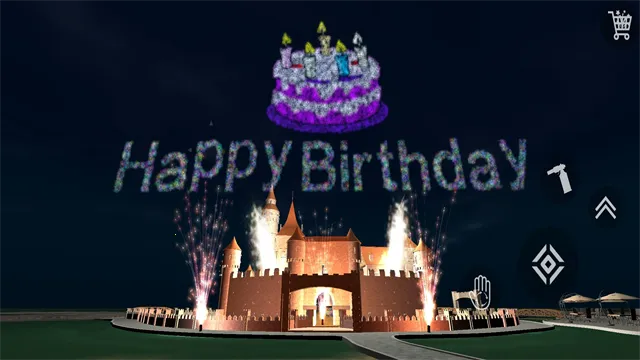 游戏玩法丰富多样。玩家能亲手策划专属烟火秀,自由设计烟花造型与绽放效果。可选择不同种类烟花搭配组合,使其在天空更加绚丽。场景十分真实,仿佛带玩家回到童年时光,还能将生活中的一些场景真实还原。操作也较为简单,屏幕左边控制移动,右边按钮用于捡起、摆放烟花、拿出点火器点火及跳跃等。点击上方时钟按钮可自由调整地图白天黑夜时间,营造最佳放烟花氛围。